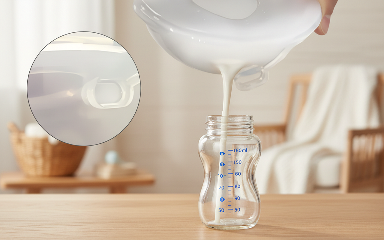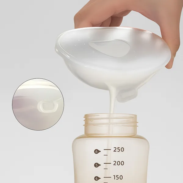 Just slip inside your bra to start collecting silently. Pouring milk into bottles is quick and mess-free.