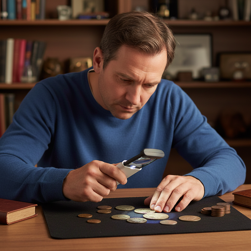 I use this foldable glass for my coin collection and the clarity is awesome. It feels sturdy, and the light is perfect for looking at tiny details.