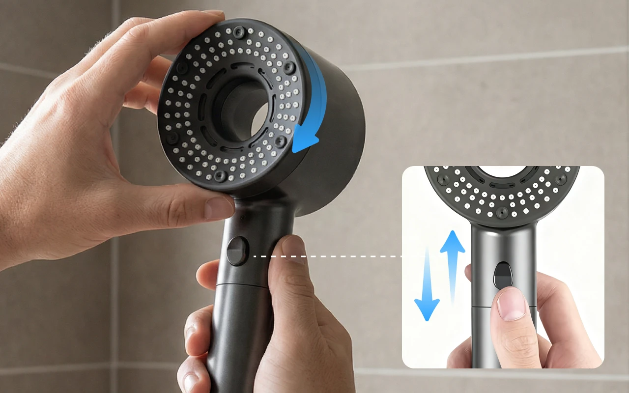 Switch modes or pause flow in one easy motion. Everyone can find their perfect setting in seconds with Ortorex shower head.
