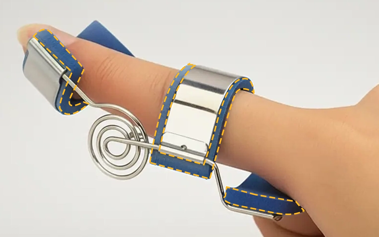 My dad has stiff fingers from old injuries. I shaped this metal splint around his knuckle, and he says opening jars and brushing teeth is finally easier.