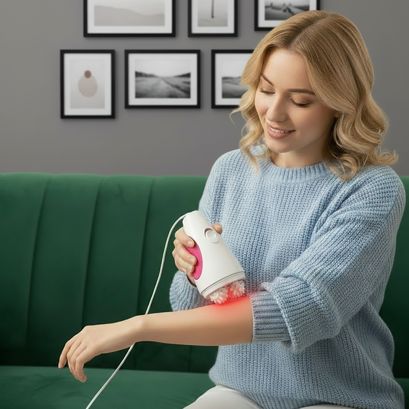 Love this gadget! I can reach my arms and stomach without any trouble. The red light feels relaxing, too.