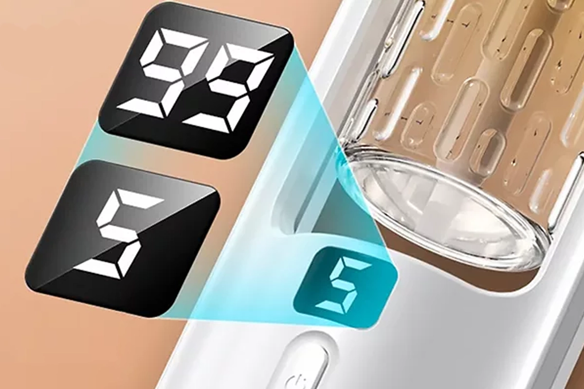 The digital screen shows the current operation mode and the battery level.