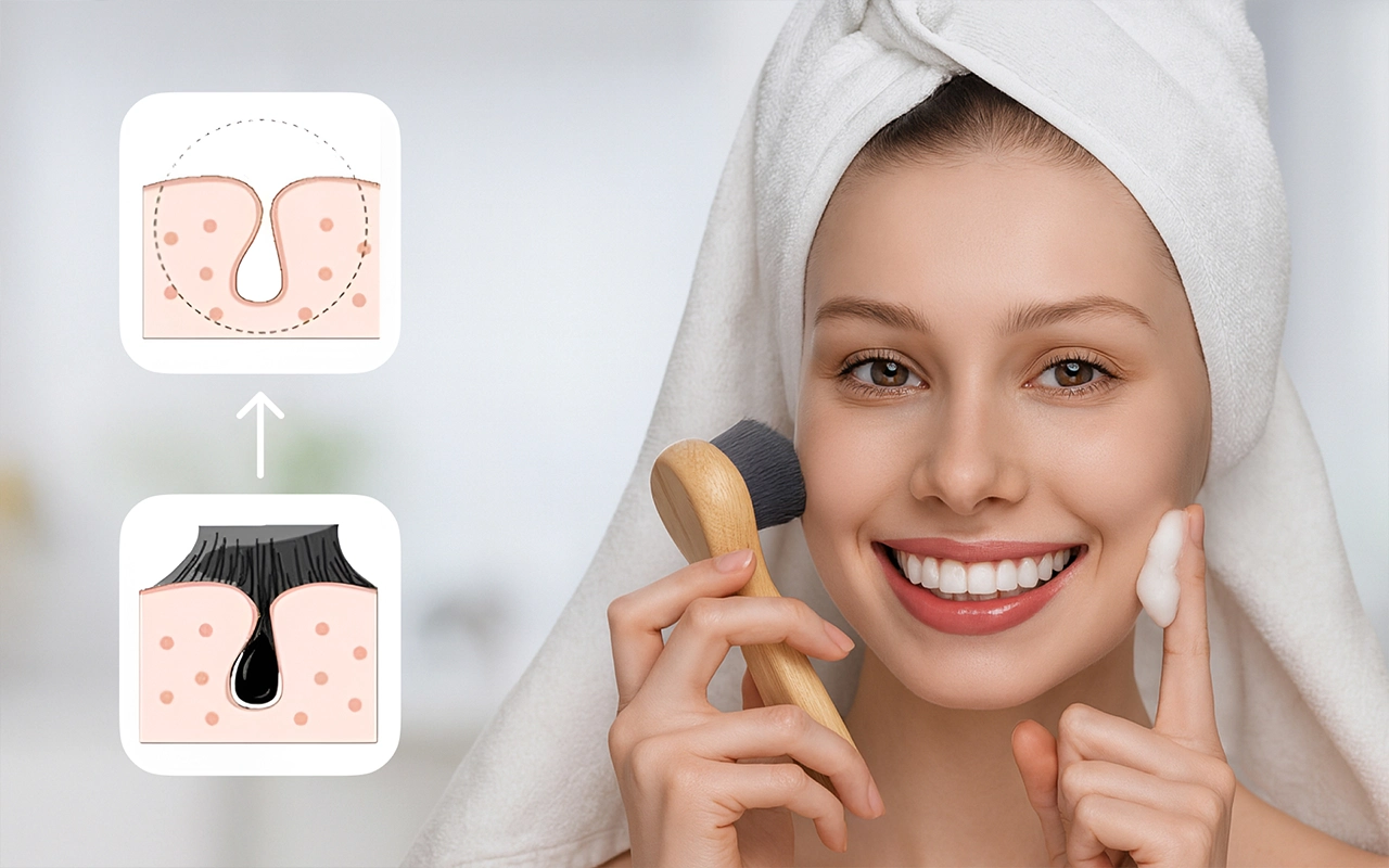 Soft bristles sweep away dead skin without irritation. Your complexion stays clear, bright, and smooth after every use.