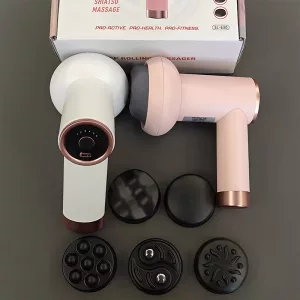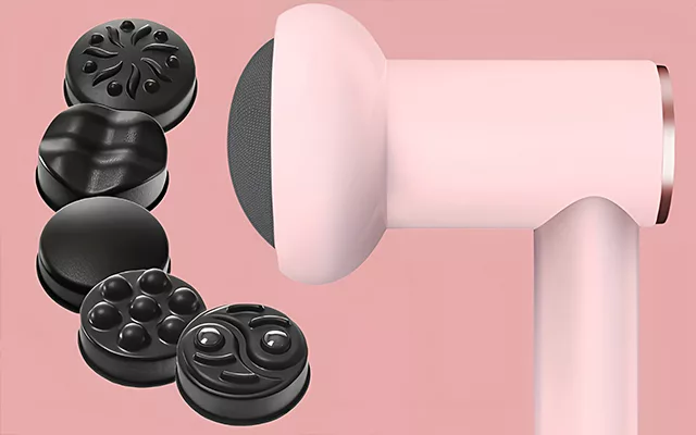 This handheld massager comes with multiple attachments. Each is designed to target a specific muscle group.