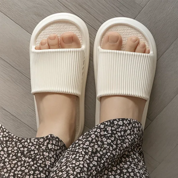 These slippers are the softest I’ve ever tried. My feet feel happy and relaxed, even after standing for ages. The open toe keeps them nice and cool.