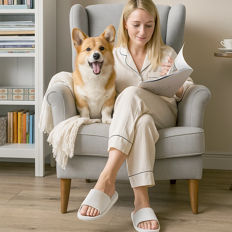 These slippers are the softest I’ve ever tried. My feet feel happy and relaxed, even after standing for ages. The open toe keeps them nice and cool.