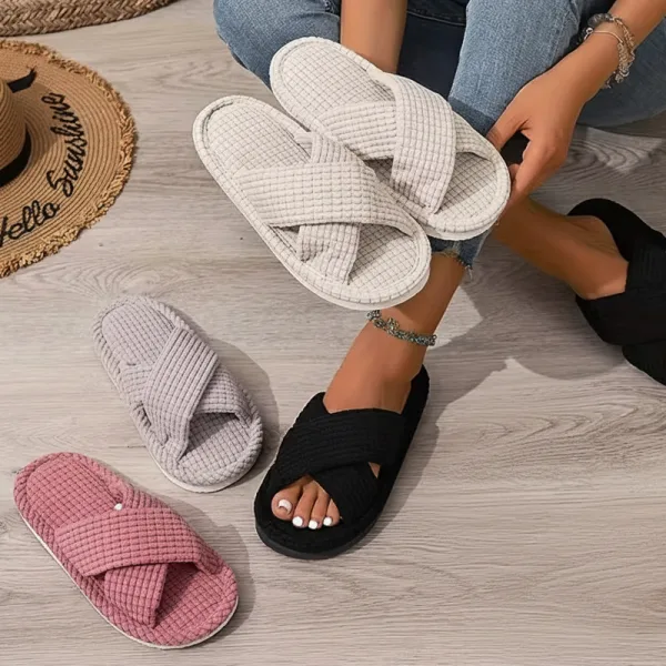 Cross bands keep your feet stable while you move. Slip-resistant soles help prevent unwanted accidents in any room.