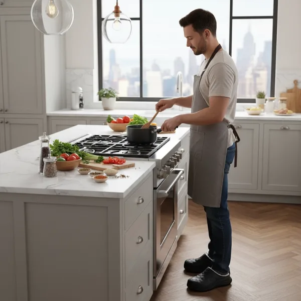 Usually my socks get wet in the kitchen, but the sole on these keeps my feet totally dry, even if I spill juice or water.