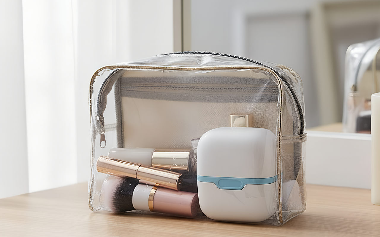 I store the ice roller in a small bag for travel. After flights, I run it over my tired face and it tightens everything up so nicely.