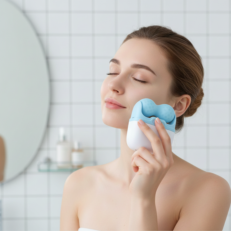 I use the face roller after hot showers to calm redness on my cheeks. It cools instantly and makes my skin feel smoother and tighter.