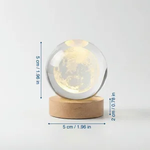 The crystal lamp looks classy on my bedside table. The wood base feels solid and the ball itself has these amazing little galaxy details.