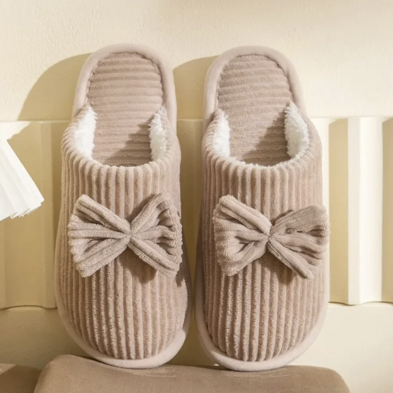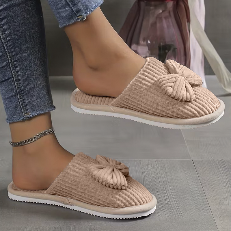 These are the best slippers I’ve tried! Easy to slip on, and the bow makes them look special. They still look great after months.