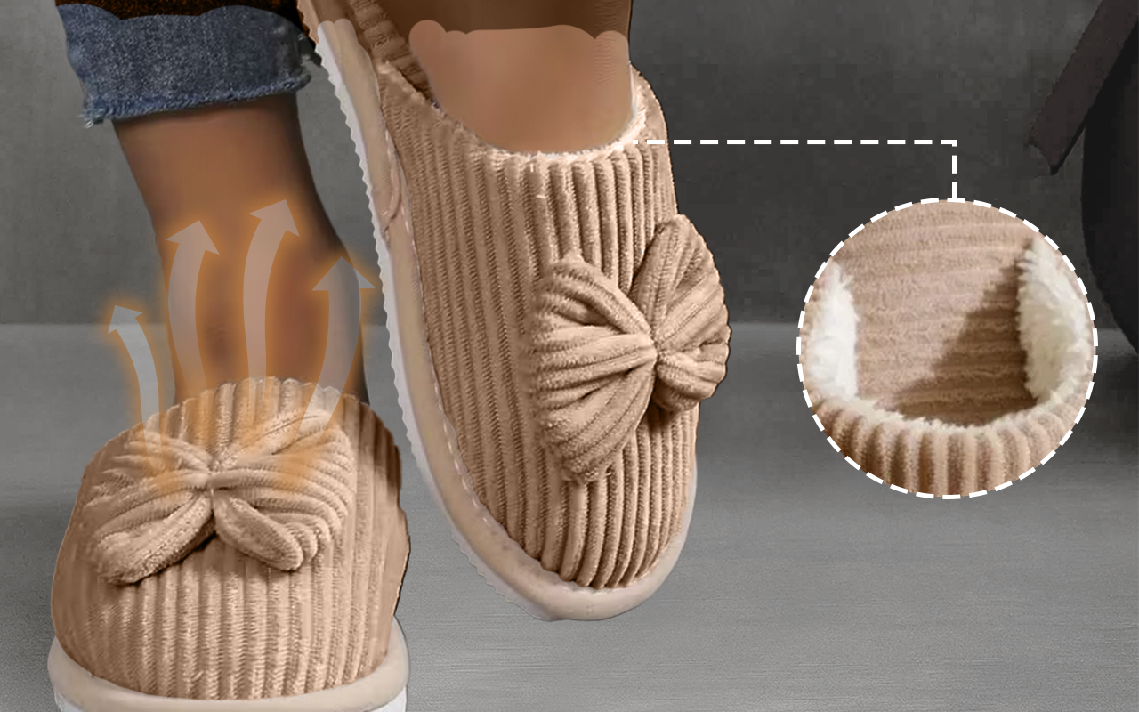 The plush inside makes my toes so happy! Even on the coldest mornings, my feet stay toasty and comfy. Also, the little bow is adorable.