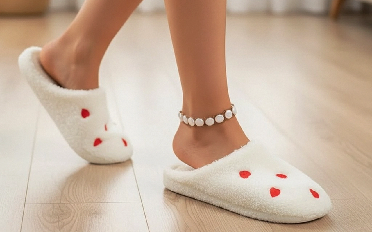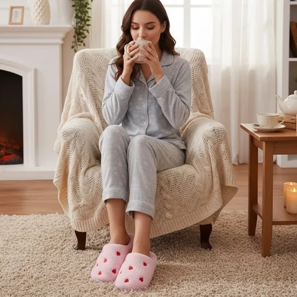 Enjoy a peaceful evening at home without cold toes. Each step feels gentle on carpets and hard floors alike. The playful heart pattern brings a smile to your day. Soft soles help you move quietly through every room.