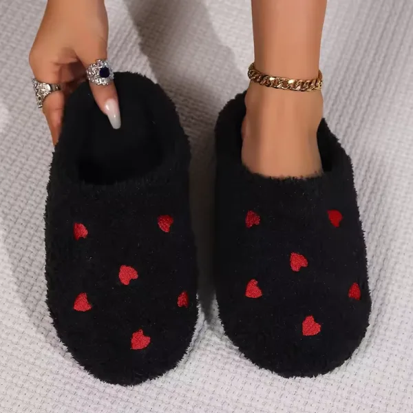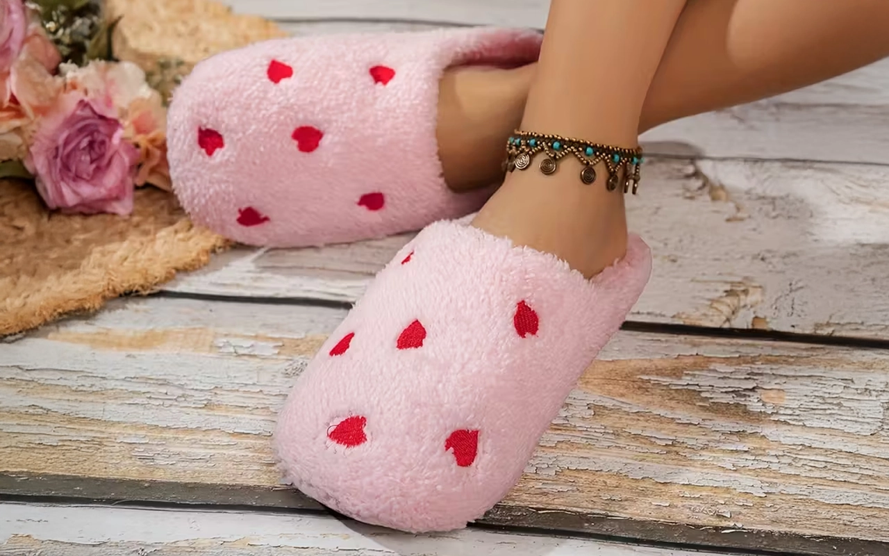 Sweet hearts give every outfit a cheerful boost. These slippers make relaxing indoors feel special and fun.