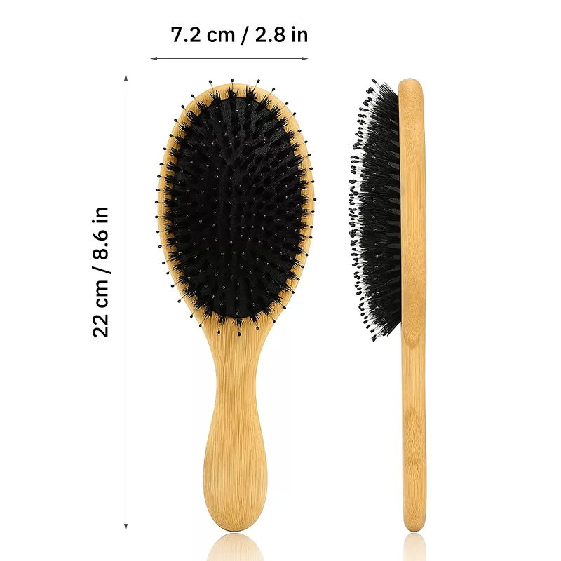 Boar bristles distribute oils evenly from root to tip. This helps hair stay silky, shiny, and less prone to breakage.