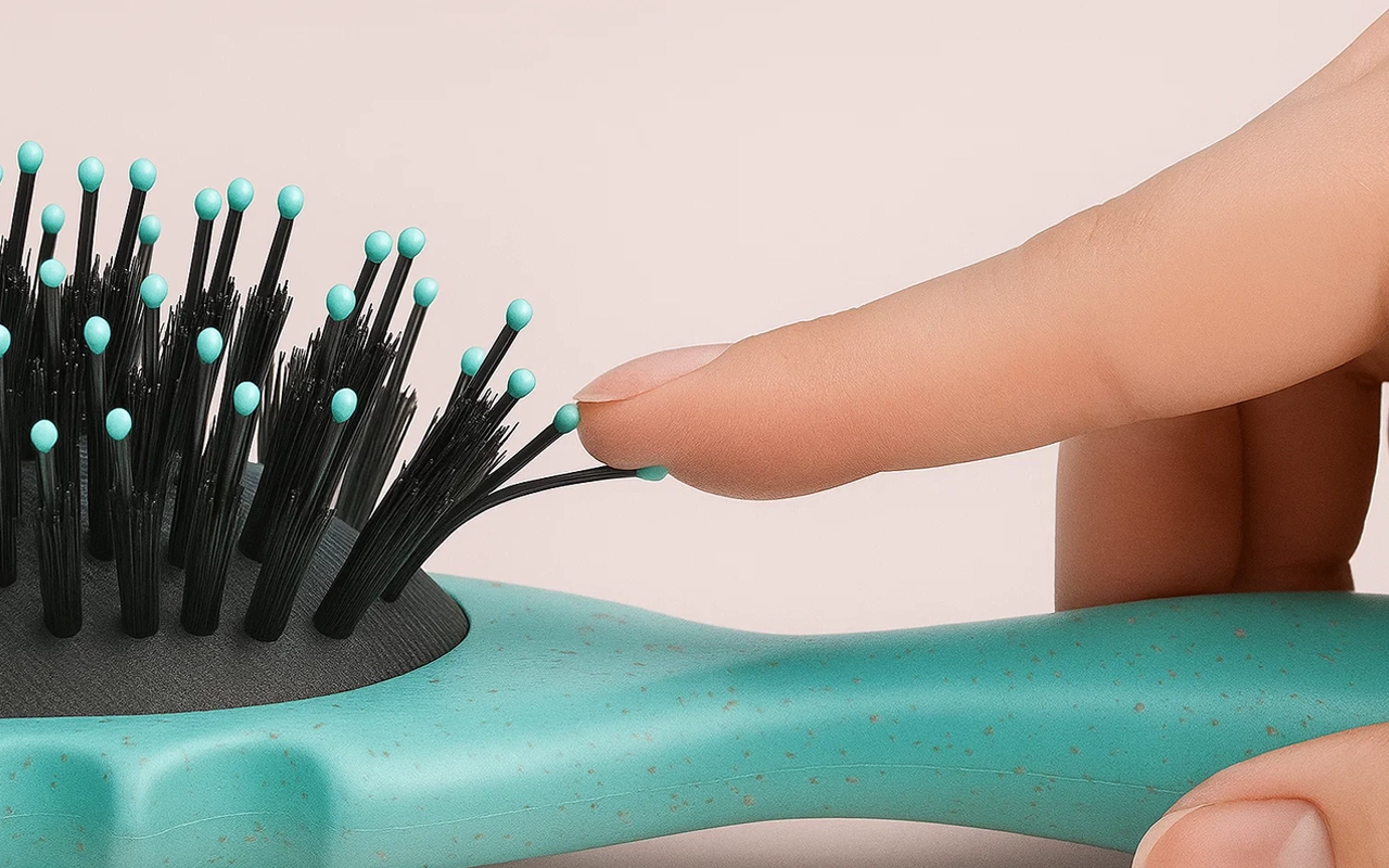 The bristles are gentle and don’t hurt my scalp. I like how easy it is to clean and the handle fits nicely in my hand.