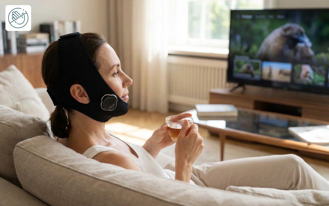 I was worried it would feel weird, but I actually like relaxing with it on. After a month, my double chin looks way less obvious.