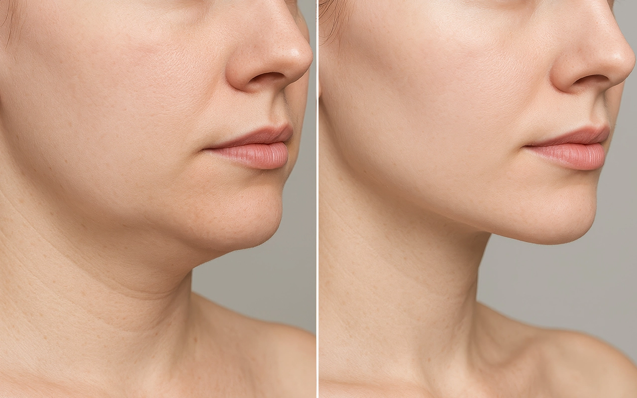 Jawline looks sharper, skin feels really clean.