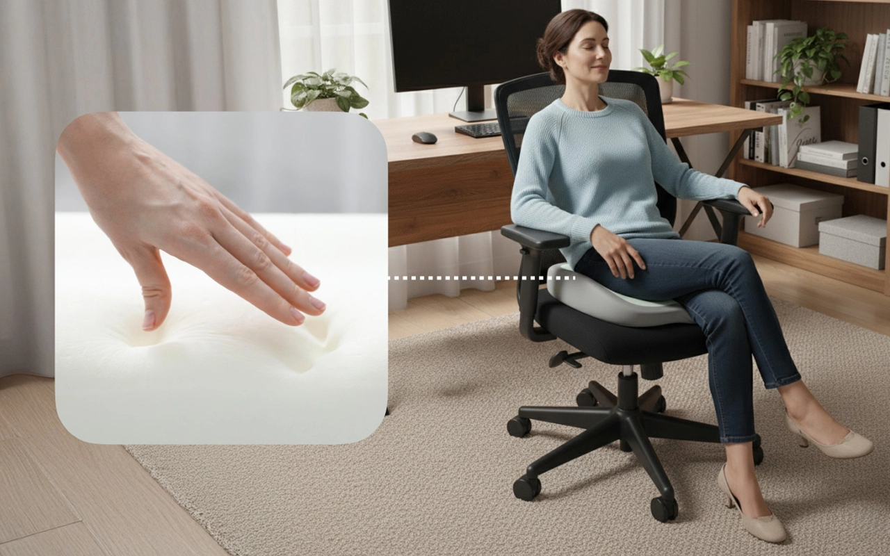 My back pain is gone when I use this cushion at my desk. I can sit for hours now without constant shifting or discomfort. Love how comfy it feels!