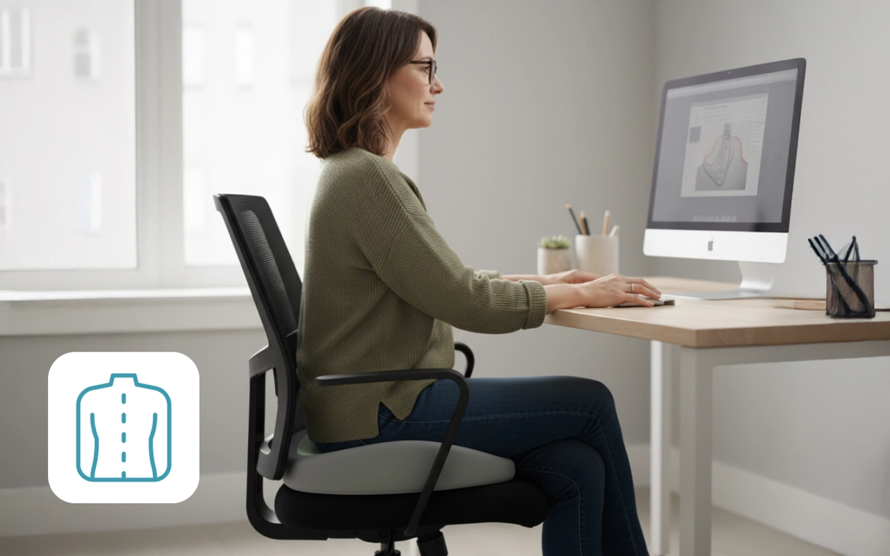 Slouching causes aches and long-term problems. Ortorex cushion promotes better alignment for your back and hips.