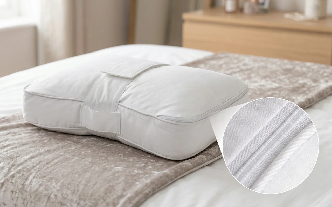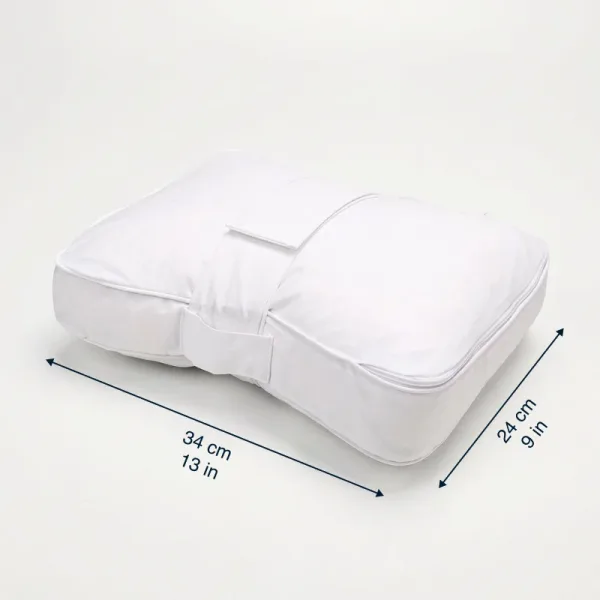 Removable cover washes easily in any machine at home. Adjustable strap keeps everything secure for peaceful nights.