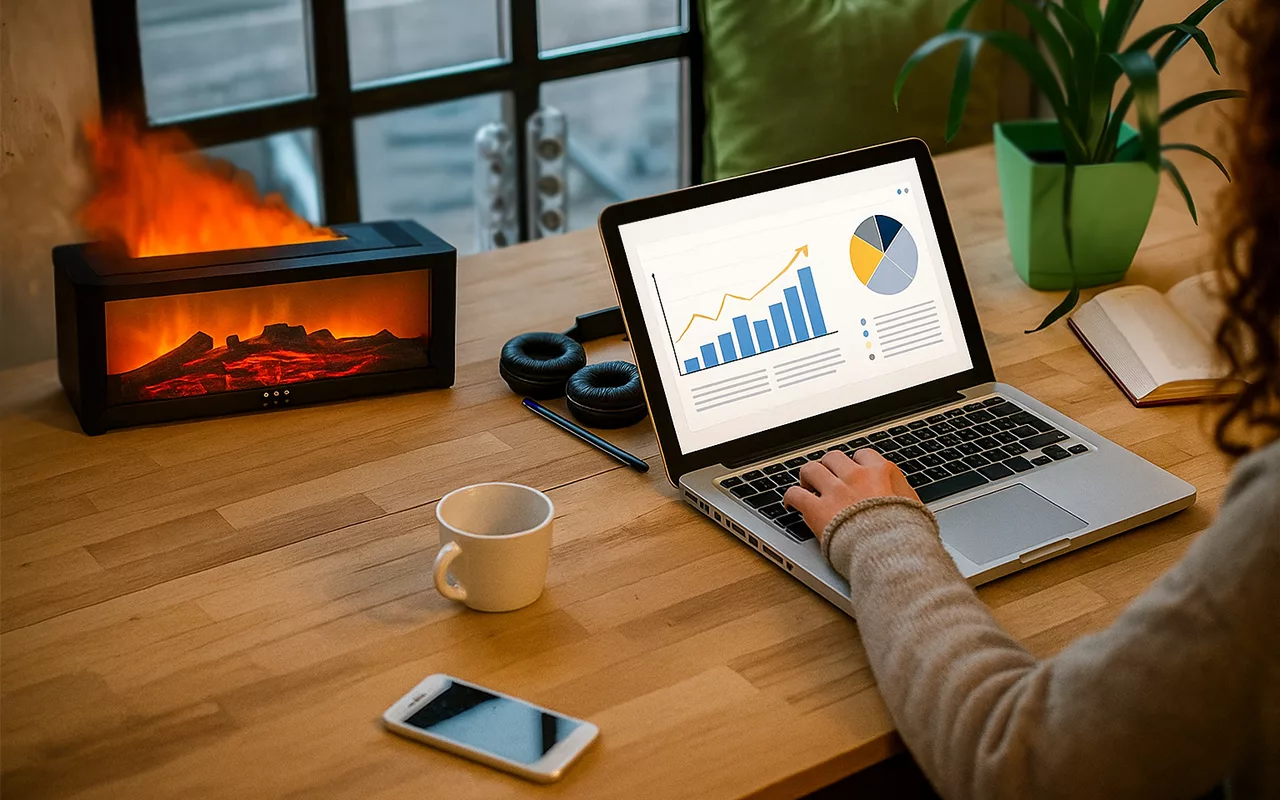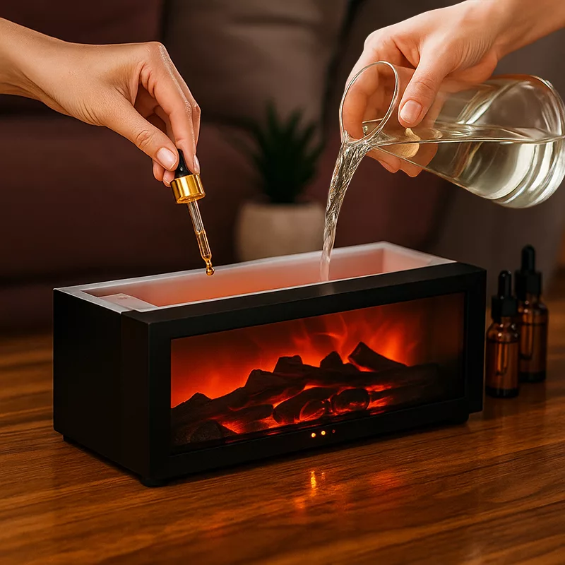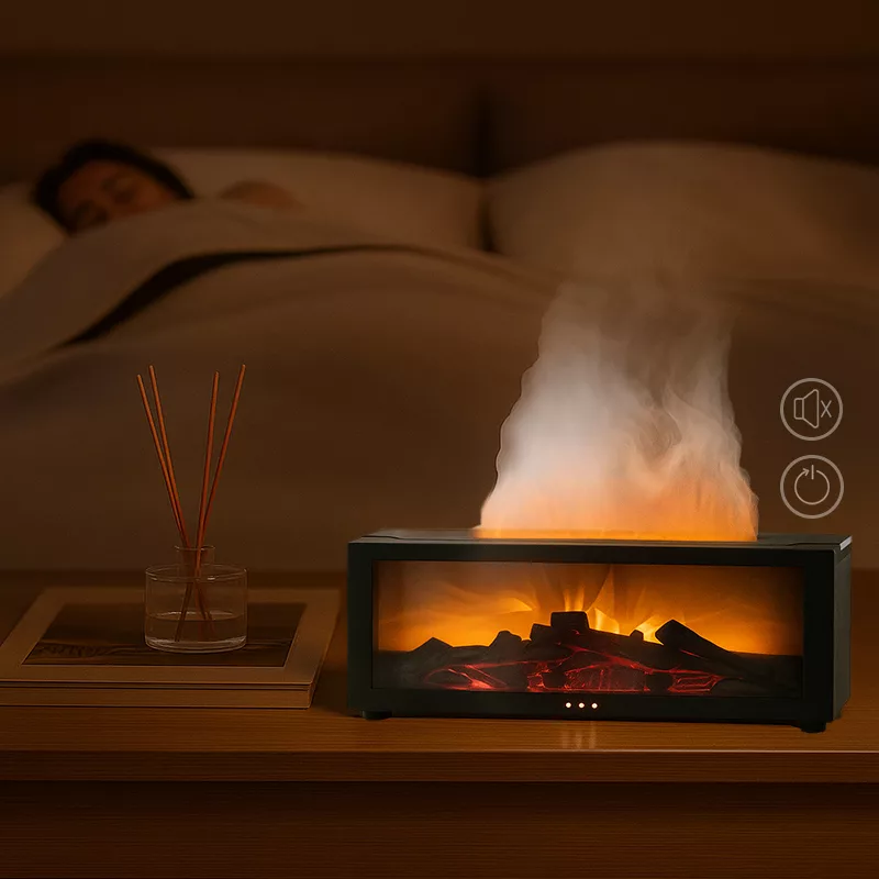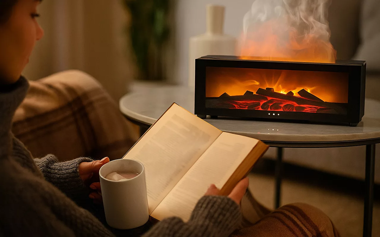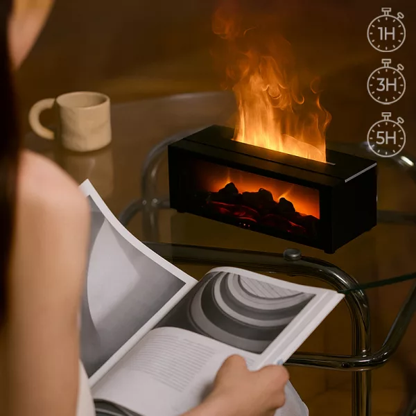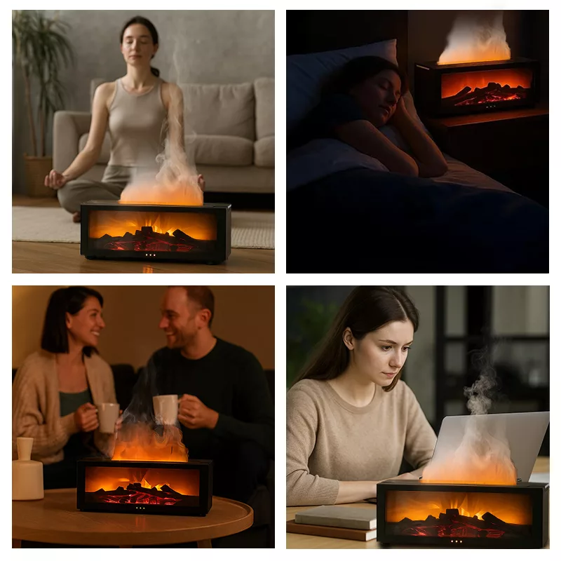 Realistic lighting and mist combine for a beautiful flame display. Enjoy a relaxing scene while winding down or working quietly.