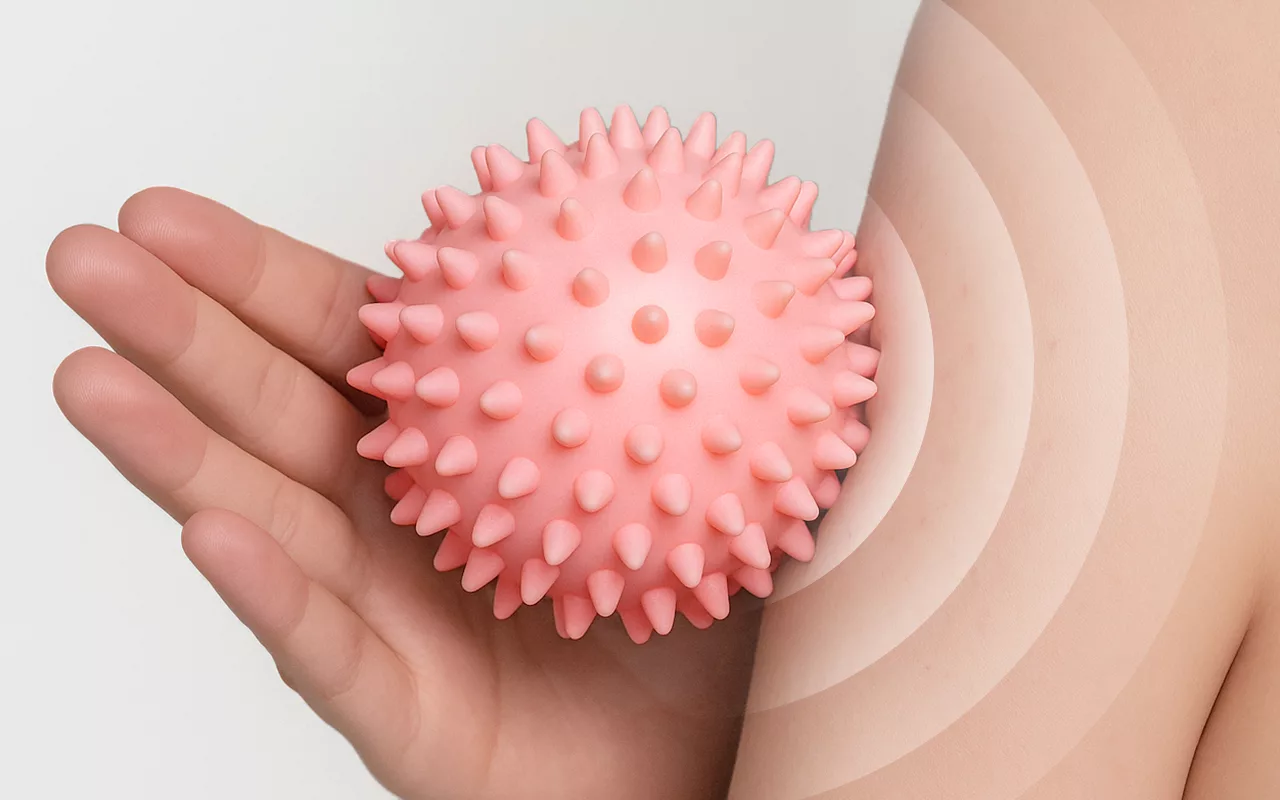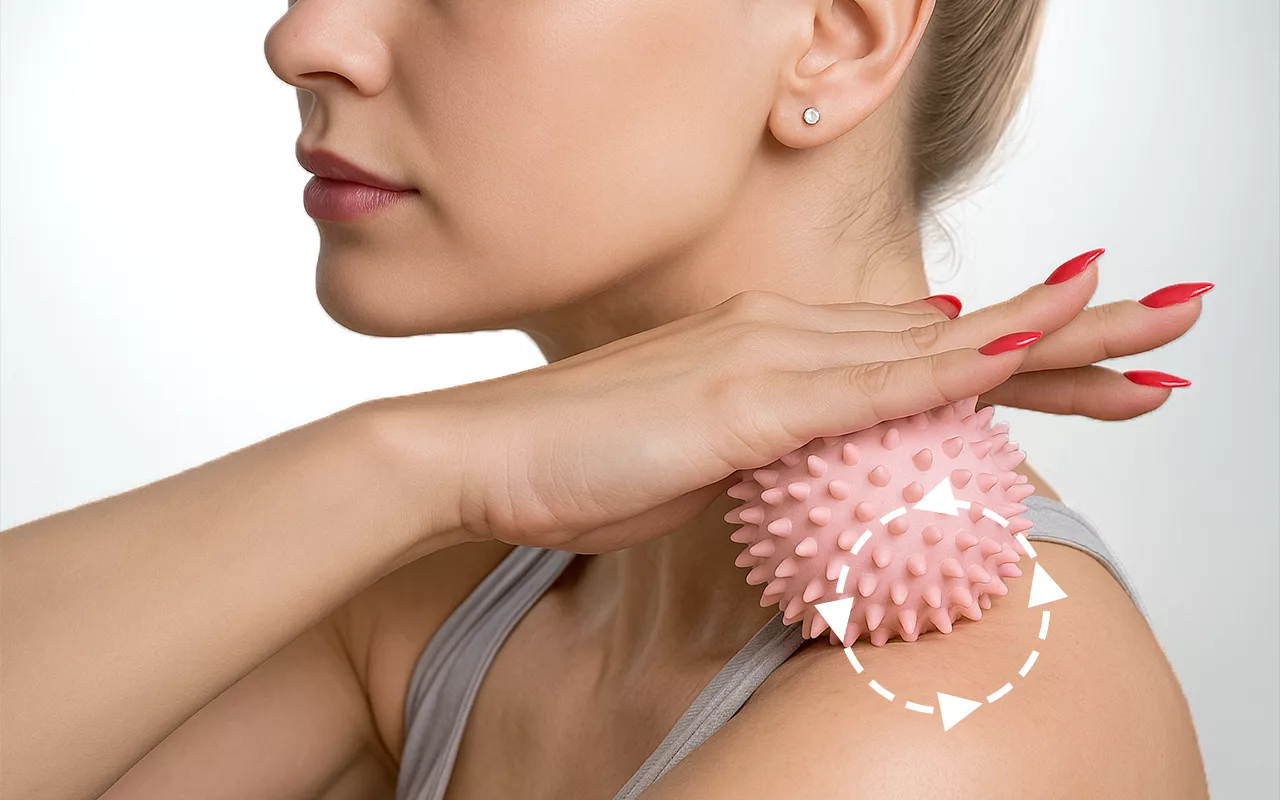 The Ortorex plantar ball is designed to relax the feet, back, and neck.