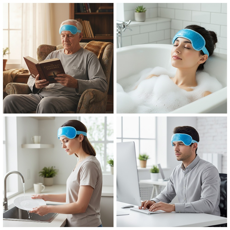 I was surprised by how well this cold wrap fits my head. The strap never slips, and it cools down my temples right away.