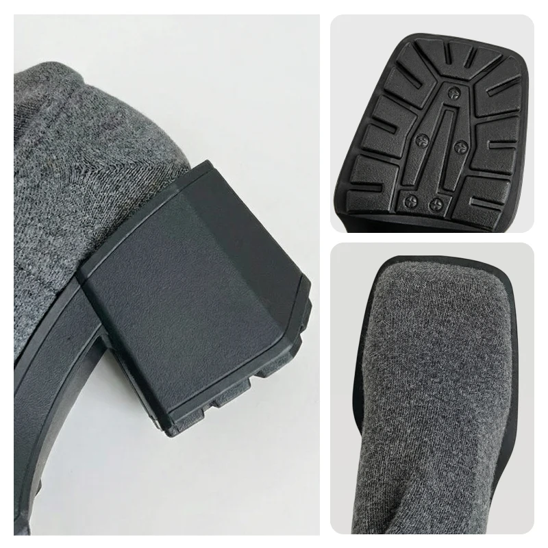 Slip on Ortorex boots and feel instant comfort and support. Cosy knitted material hugs your legs gently without rubbing or sliding. Thick soles make walking easier while keeping feet safe from cold floors. These shoes add height without making balance difficult.