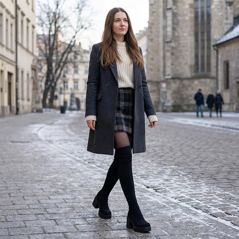 Thick, knitted upper keeps legs and feet warm outside. Chunky platform shields against wet pavements and cold weather.