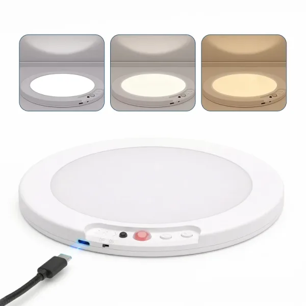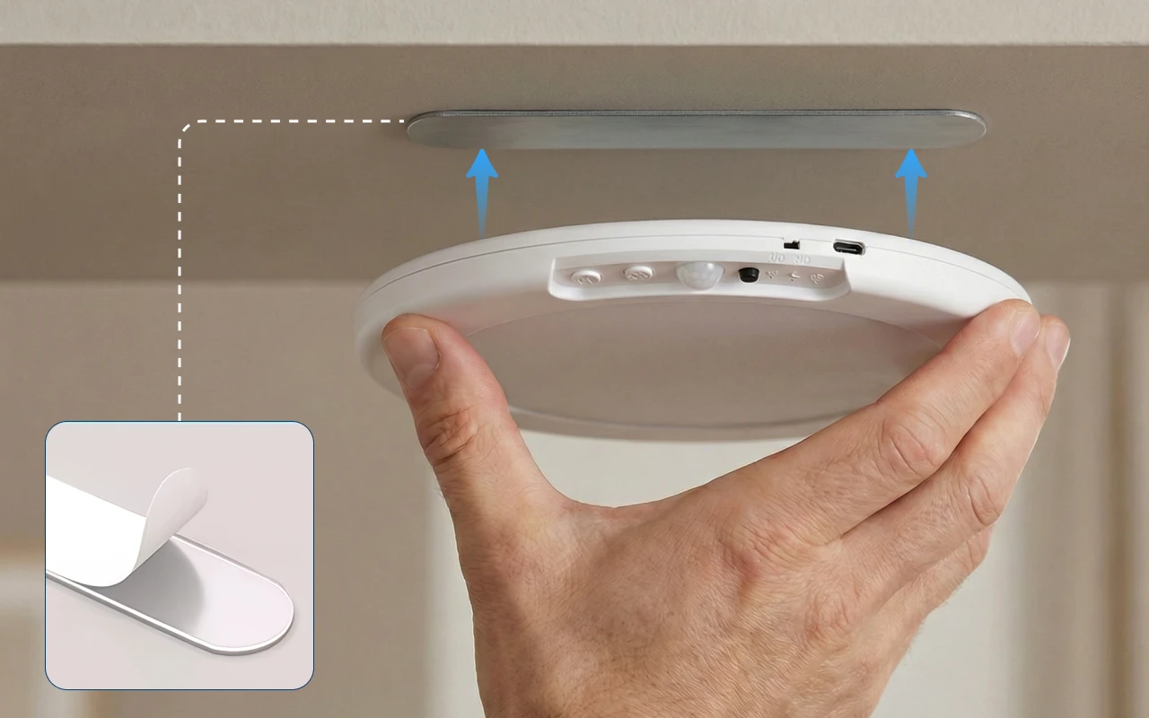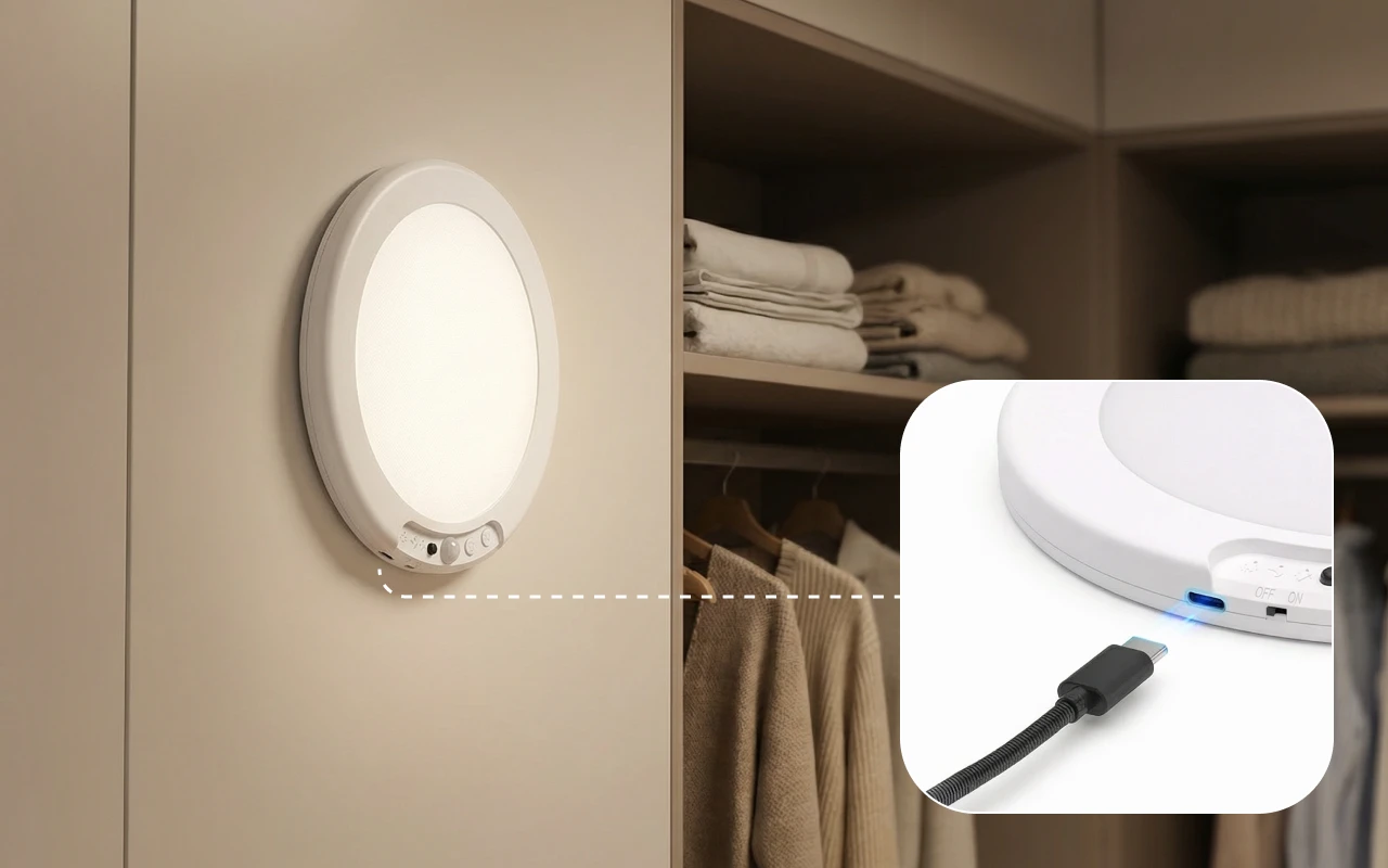 Recharge Ortorex ceiling light quickly with USB Type-C cable. One full charge delivers weeks of dependable illumination.