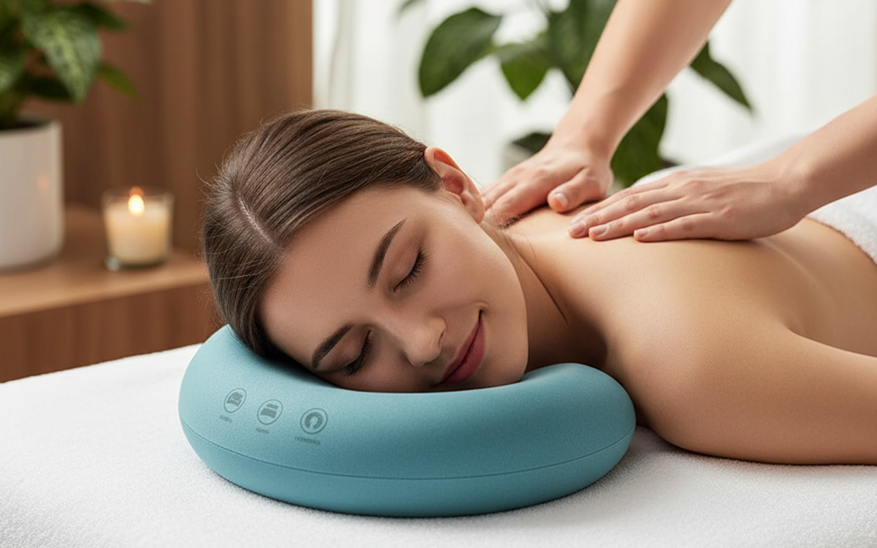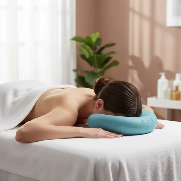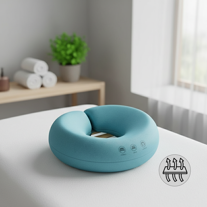 Rest easy while enjoying soothing relaxation. The unique cut-out provides gentle support without applying pressure to the cheeks. Every moment spent helps relieve tension and leaves your neck refreshed. Designed for both home and professional spa use.
