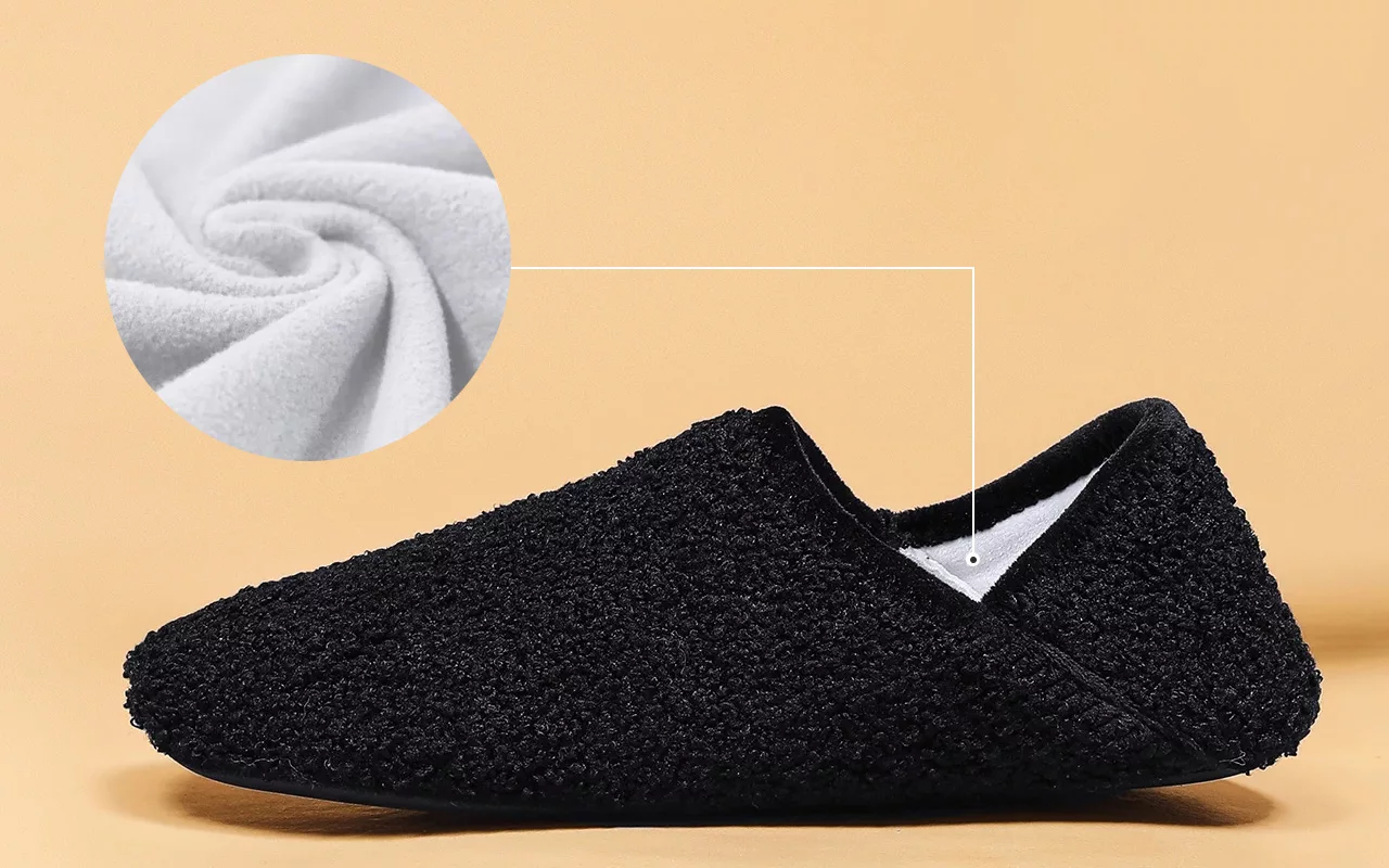 Fleece lining shields feet from winter’s chill from morning until bedtime. Cotton padding helps maintain a pleasant temperature indoors.
