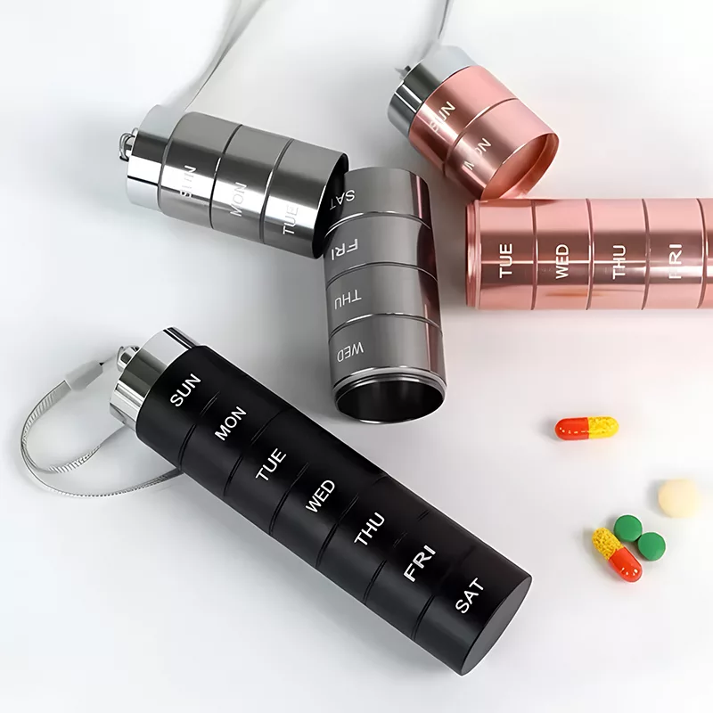 I use this metal pill case every morning, and it helps me remember my meds so I never forget a dose now. Really handy.