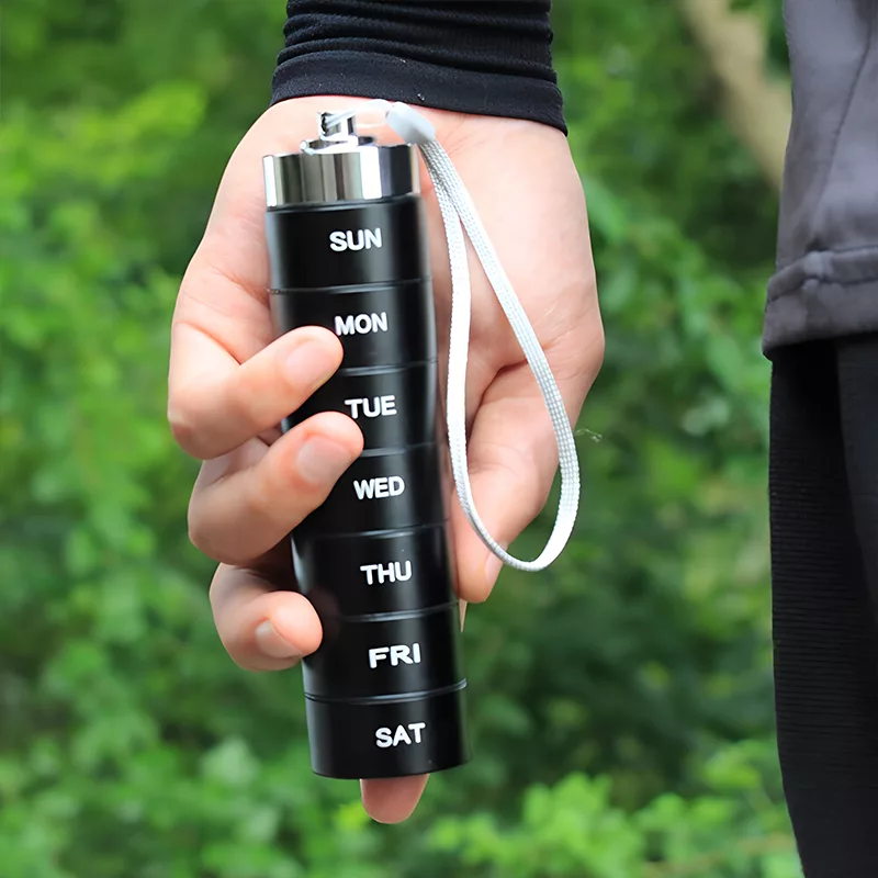 The Ortorex pill organiser keeps them safe, dry and easy to find. No more searching for loose medication or missed doses again. Each section is clearly marked, helping you stay organised all week. The compact design fits neatly into any bag or pocket.