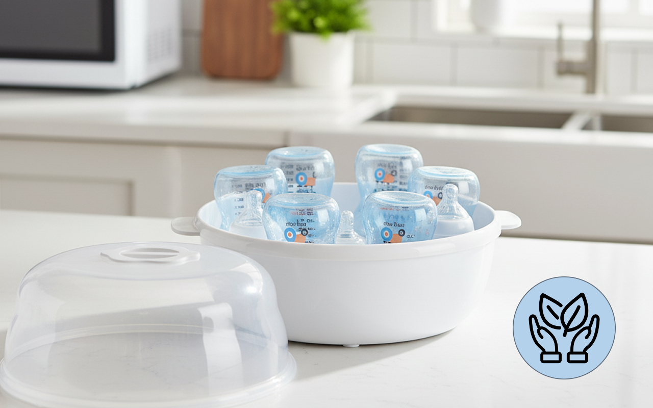 Just fill with bottles, add some water, and zap—done. Feels safe, too, since it uses BPA-free plastic. Really happy with it.