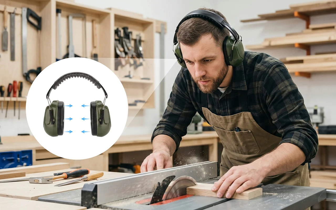 I wear these in my wood shop with power tools running. The padding sits softly, the band doesn’t dig in, and I can work for hours comfortably.