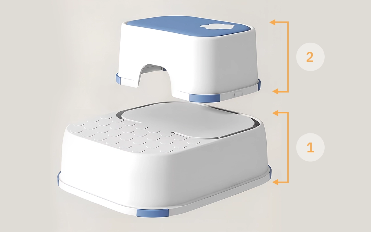 Two levels allow little ones to reach higher surfaces easily. Tasks like washing hands or brushing teeth become effortless.