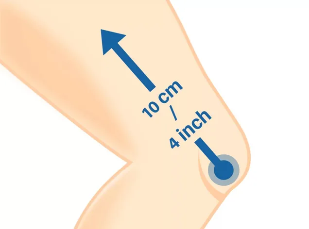 - 2. Wrap the measuring tape around the widest part of your thigh from about 10cm/4" above the midpoint of your kneecap.