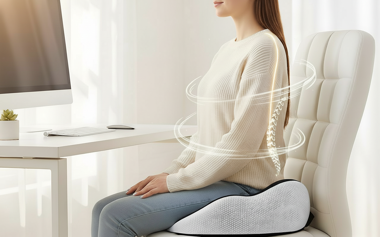 Extended hours on hard chairs cause aches and tiredness quickly. The Ortorex cushion supports your lower body and keeps you relaxed. No more sore hips or numb legs during work, driving, or resting.