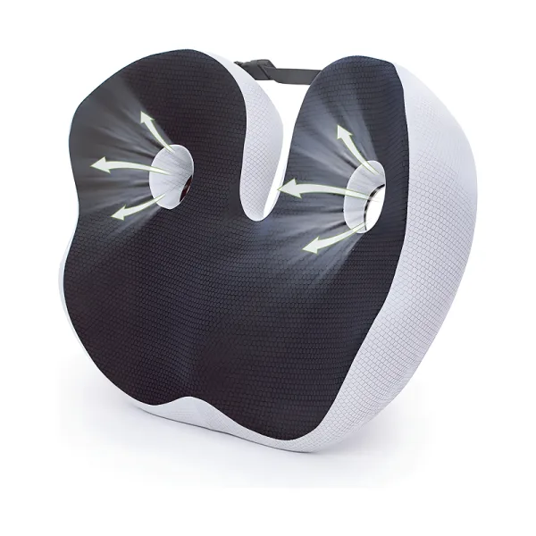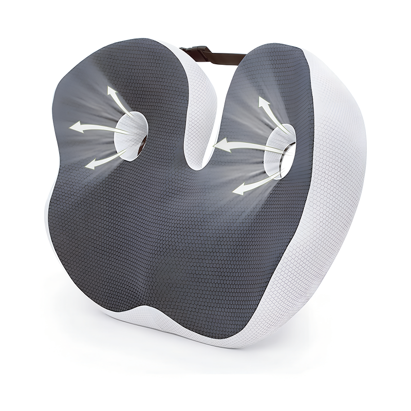 Carrying this cushion to and from work is easy, and my back hurts a lot less. The shape makes it super comfortable to sit for hours.