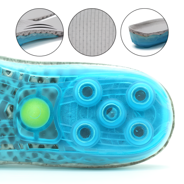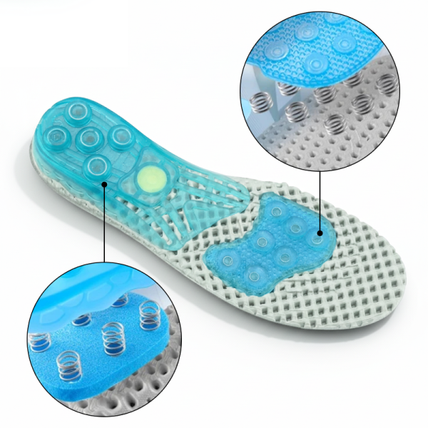 Unique spring technology absorbs shocks and reduces muscle strain. Relief spreads quickly, helping sore heels and arches recover fast.