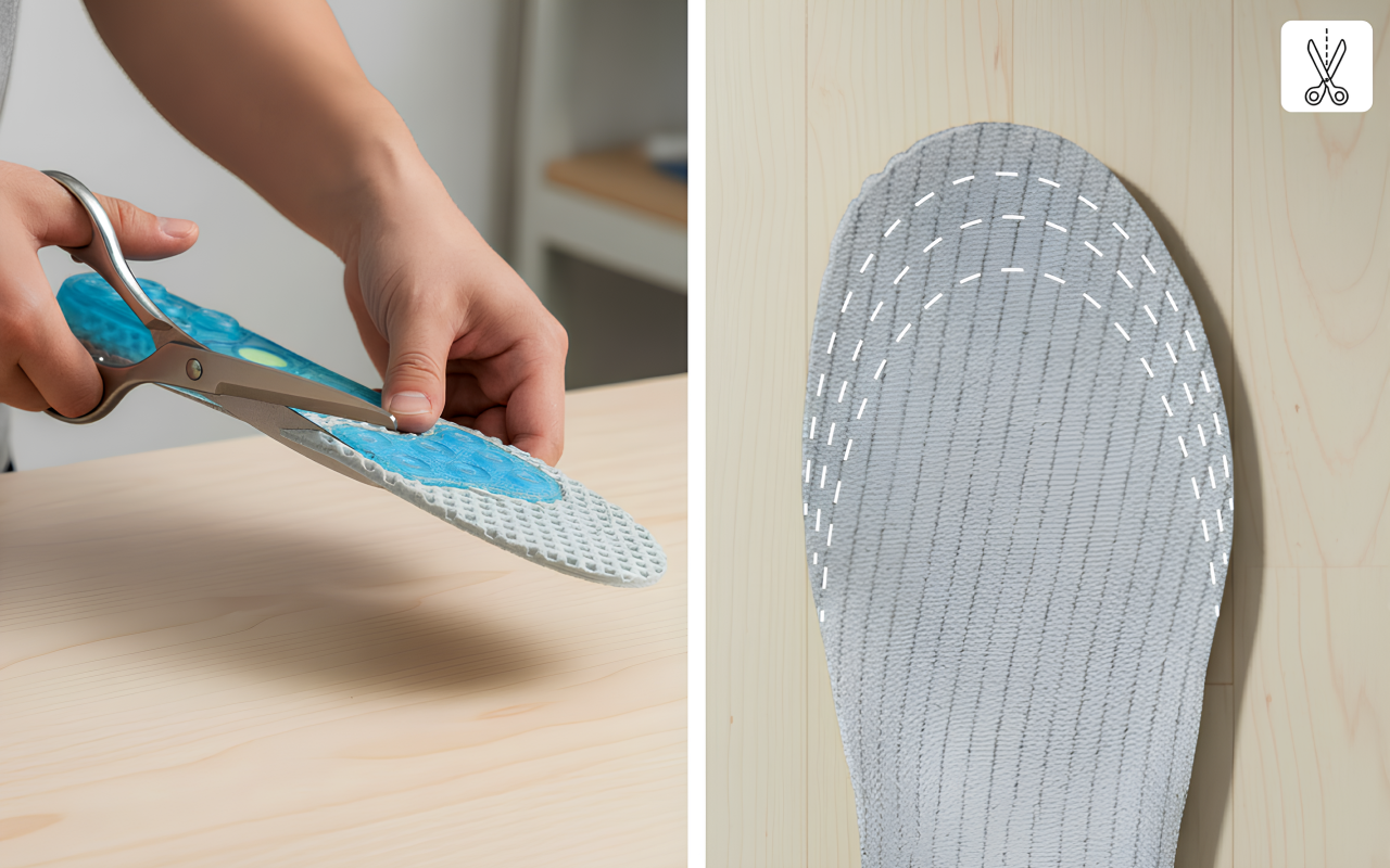 Super easy to trim and fit inside my gym shoes. I like how comfy they feel during basketball, with less pounding pain on jumps.