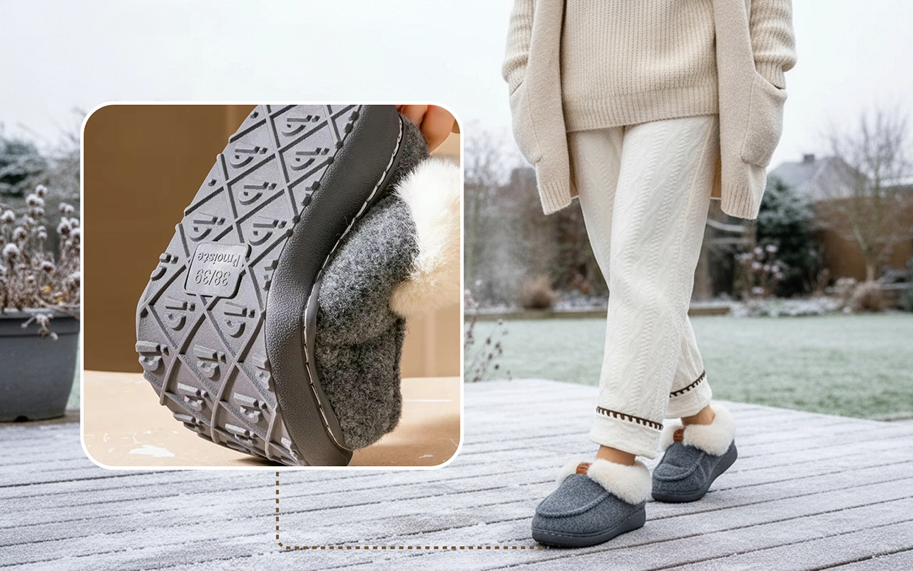 Memory foam cushions every step and effectively reduces foot fatigue. Even long hours at home feel relaxing and easy.