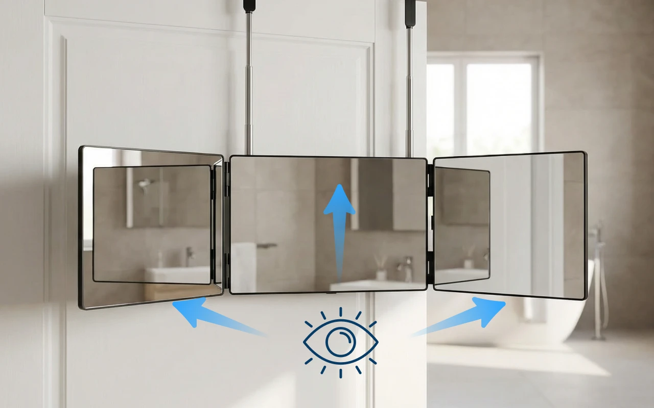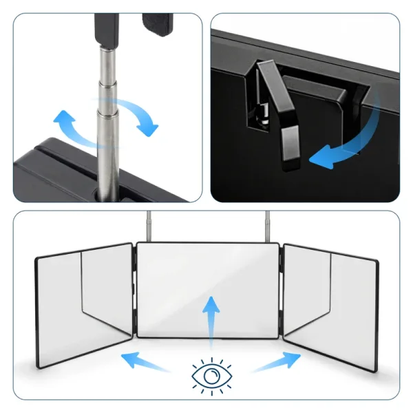 Three panels reveal hard-to-see spots easily every time. No more missed patches or awkward bending needed.