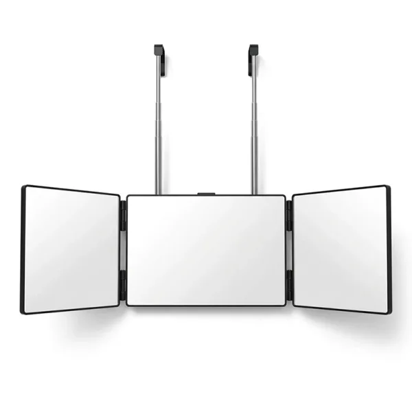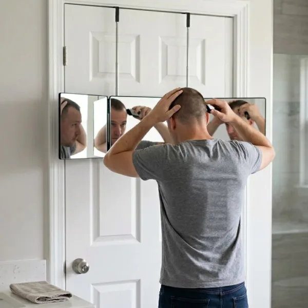 The three-sided mirror lets me trim my beard way better than before. I can finally see the back of my head without twisting around.