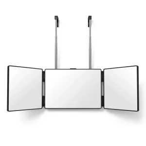 Ortorex trifold mirror quickly and easily solves daily grooming struggles. Adjust the height for full visibility while styling or shaving. Fold it flat to fit in bags and drawers for travel. Find clear reflections for haircuts, make-up, or skincare every day.