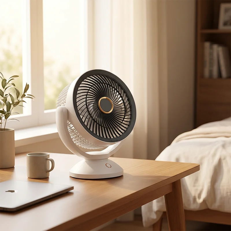 Bought this little fan for my home office. It cools my small room fast, and the soft hum actually helps me stay focused while typing.