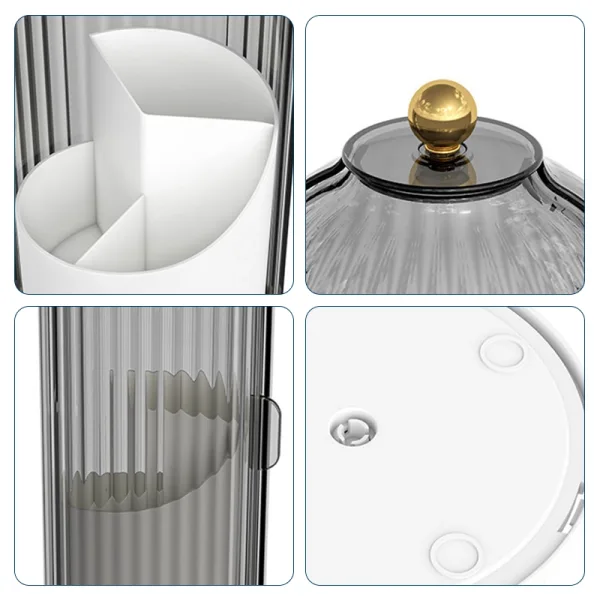 The lid keeps all the dust away and I can see all my brushes clearly. Spinning the base is fun and super convenient.